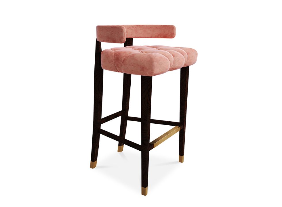 Contemporary bar chair made of solid ash wood and upholstered with velvet.