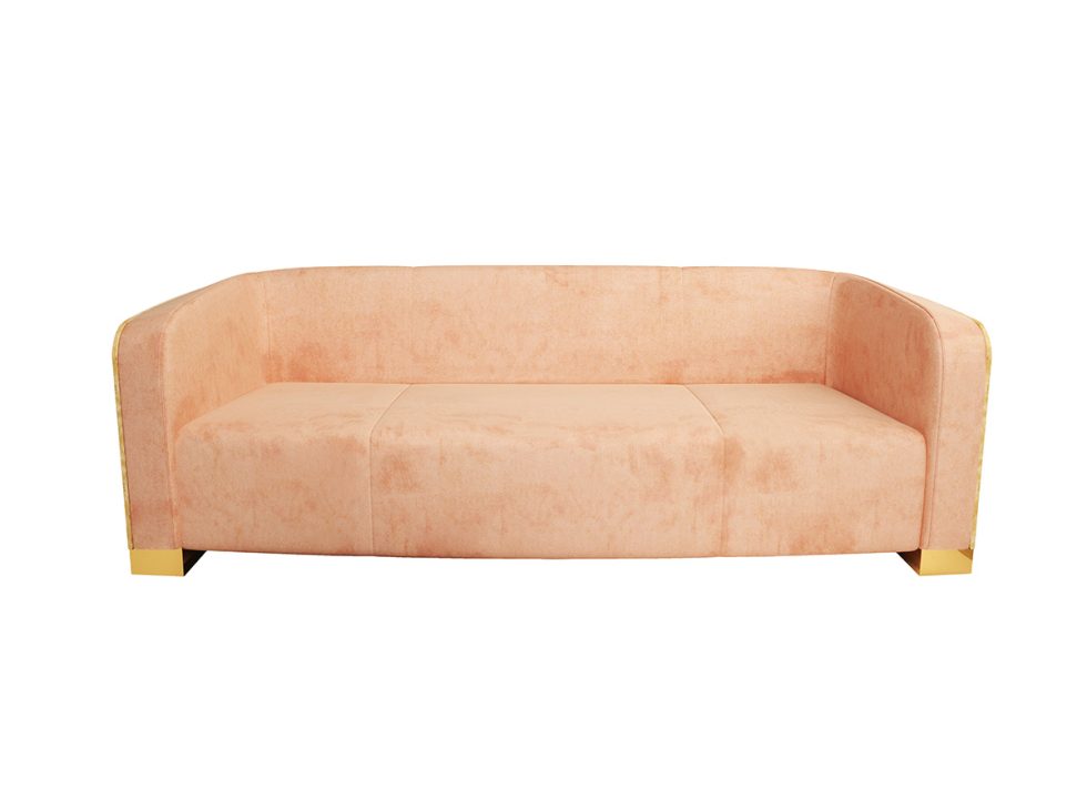 Contemporary sofa made of bird eyes wood veneer and padded with polyurethane foam, upholstered with velvet.