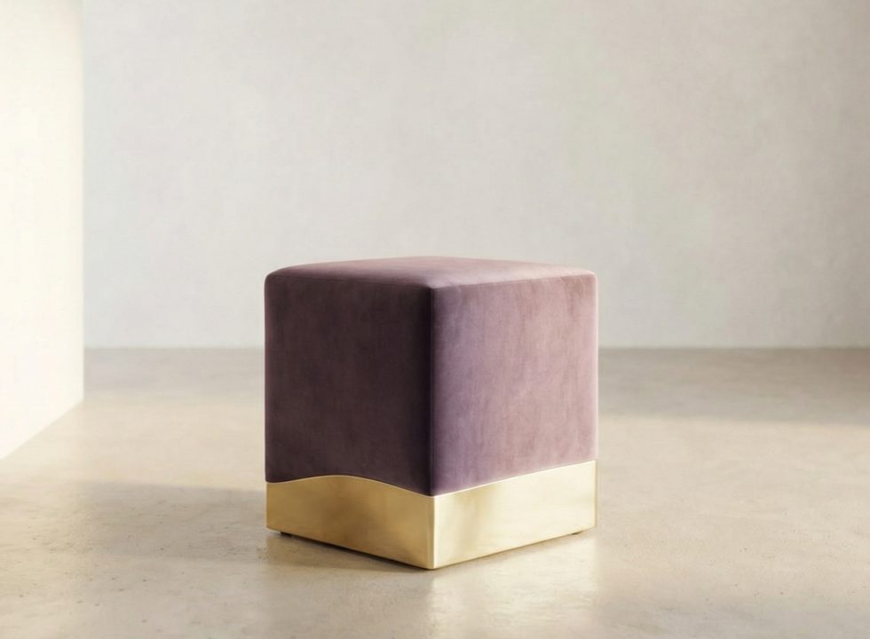 Contemporary stool upholstered with velvet. Base in wood finished with gold leaf.