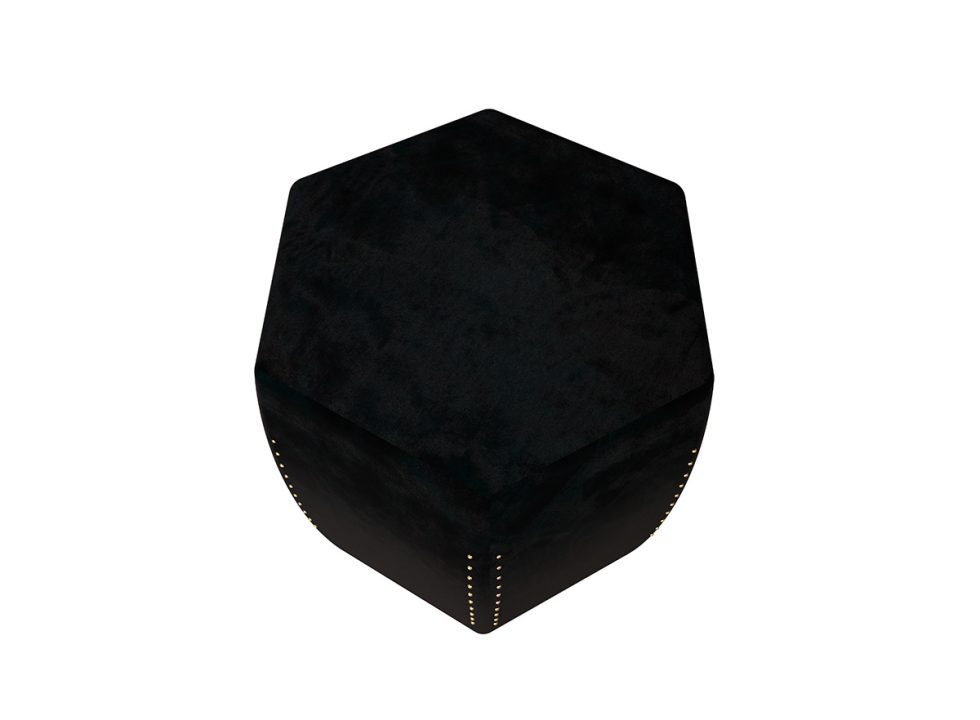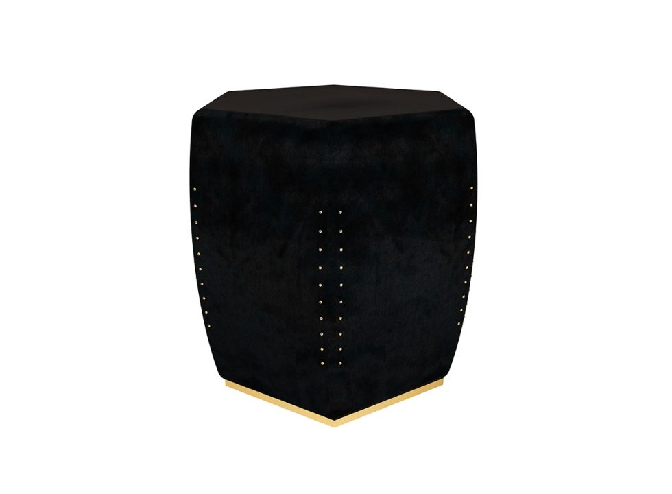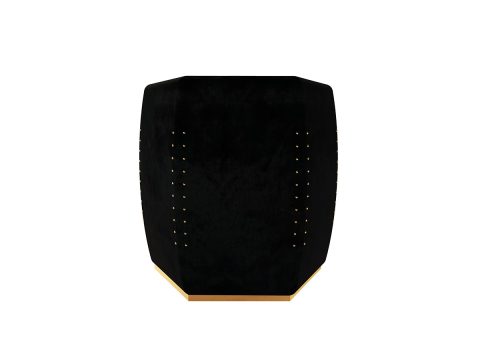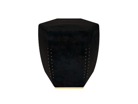 This stool is structured with solid wood and upholstered with soft velvet and gold brass nails applied on the sides. The base is finished with polished brass.